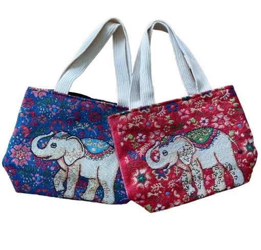 Mini Woven Fabric Tote Bag with Elephant Design