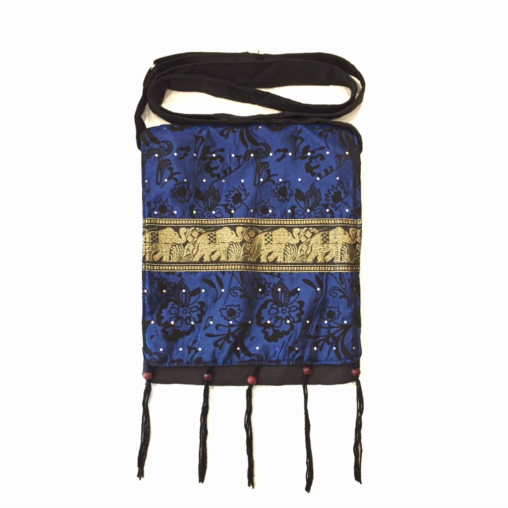 Front flap lifts open, adjustable strap, zip pocket and zip closure.