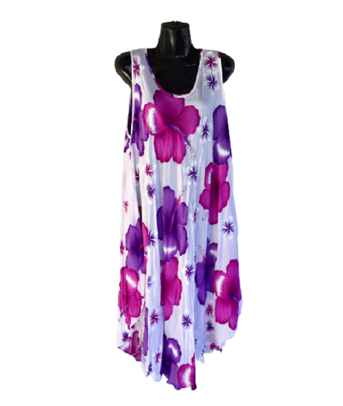 Hibiscus White Umbrella Dress