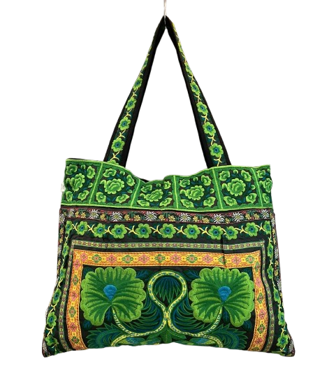 Hmong Flowers Large Tote Bag Green