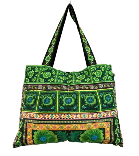 Handmade Hmong Tote made in Chiang Mai, Thailand from machined Fabric Flower Designs