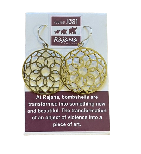 Spiral Lotus Earings made from Bombshells and Bullets in Cambodia