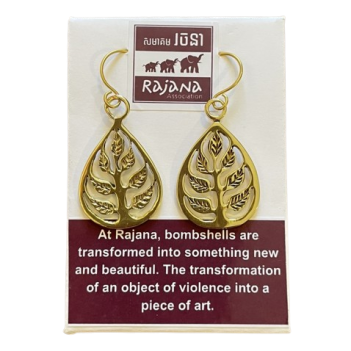 These earrings although classic in design have a unique story. One of Rajana’s most significant projects has been the creation of the Bombshell range of jewellery. The Bombshell Jewellery is crafted from old artillery shell casings that have been gathered up from around the Cambodian countryside and the Mekong River.