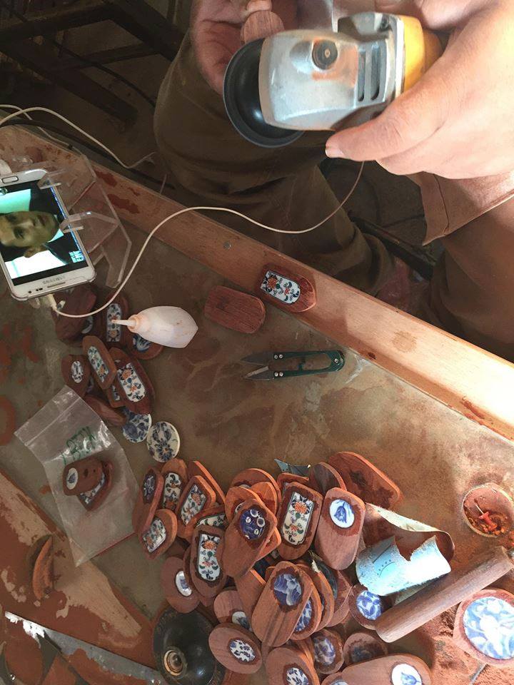 Vintage Japanese Porcelain and Hardwood Pendants Fair Trade from Cambodia