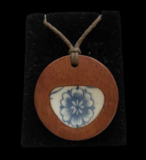 Vintage Japanese Porcelain and Hardwood Pendants Fair Trade from Cambodia