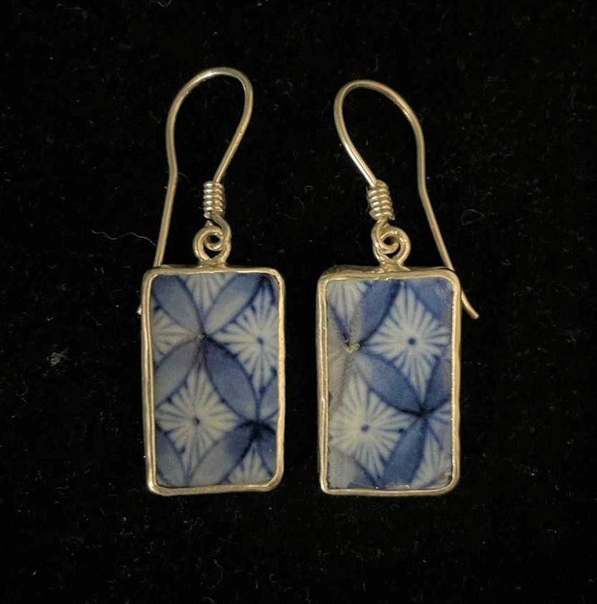 Beautiful Earings made from Fragments of Vintage Japanese porcelain.