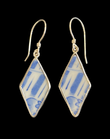 Beautiful Earings made from Fragments of Vintage Japanese porcelain.