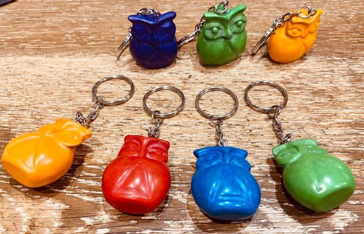 Kissi Stone Owl Keyrings handmade in Kenya by Afrikiko