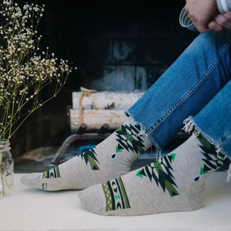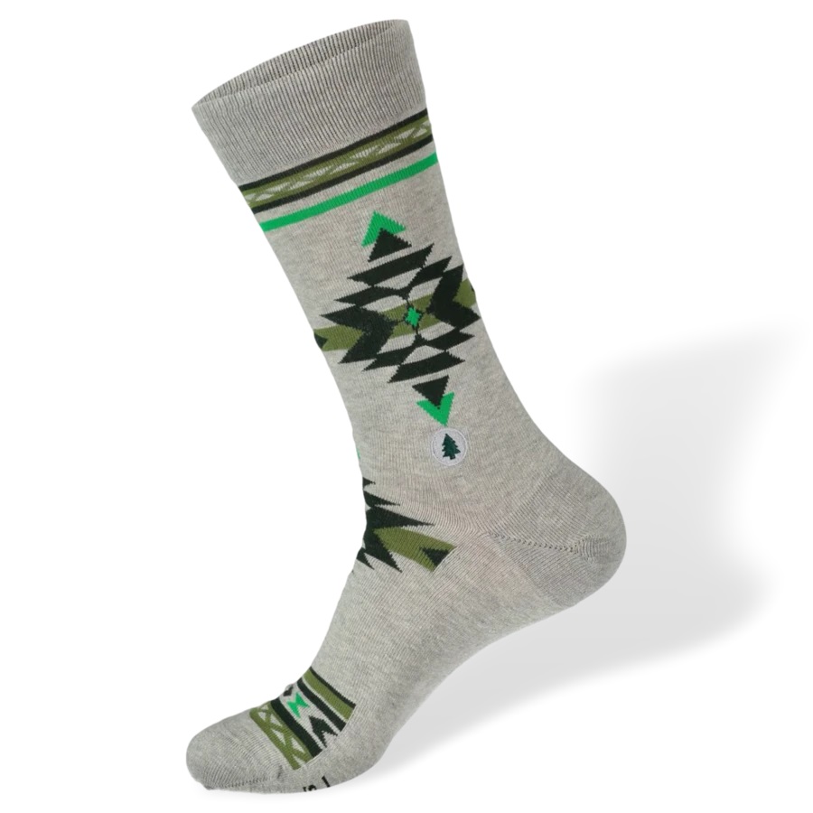 Go green and plant trees! Featuring a green aztec design on grey, these socks plant ten trees through our partner Trees for the Future. This pair is perfect for adding a bold pop to your outfits. Show your love for keeping our planet green with Socks that Plant Trees.