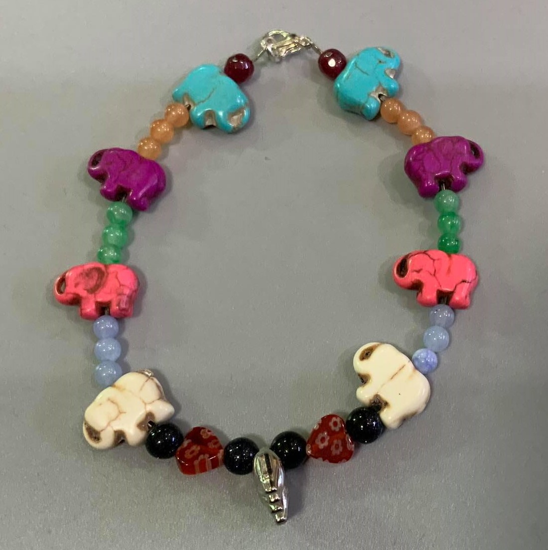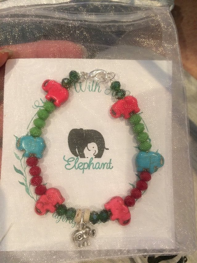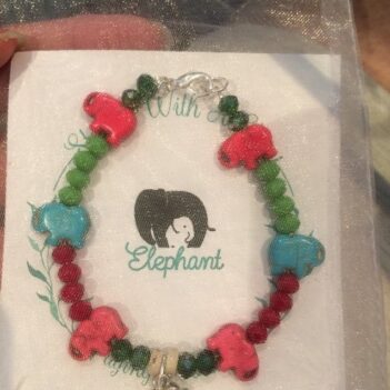 All Bracelets are handmade with semi-precious stones, glass beads and Elephant Charms.