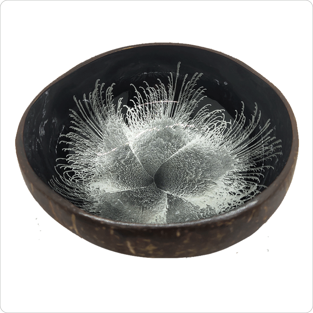 Natural coconut shells are used which can vary in size and thickness.