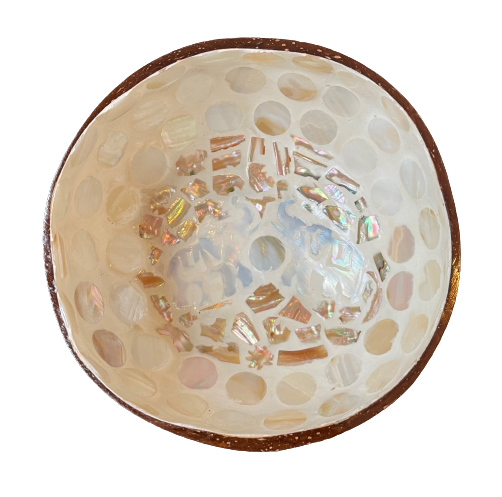 Natural coconut shells are used which can vary in size and thickness.