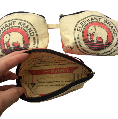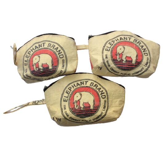Set of 3 recycled Zip Purses with the original Elephant Brand Logo