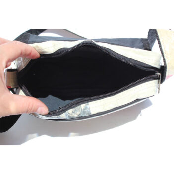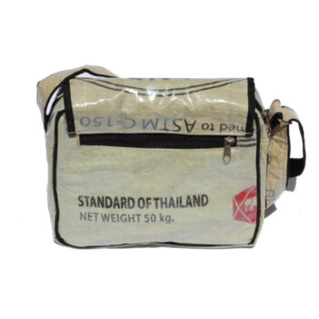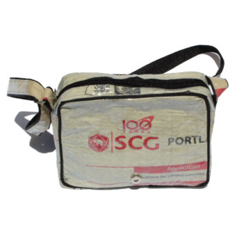 Made from recycled Cement Bags, with waterproof black fabric lining and PVC protection. All materials have been saved from Landfill in Cambodia