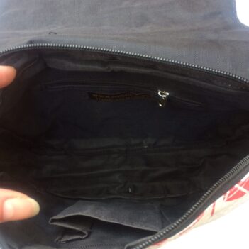 The bags have zipper and velcro or magnetic closures and are very high quality. Lined with the same material and an inside zip pocket. Has a zipper on the outside flap. Covered in a thick PVC plastic for durability