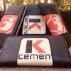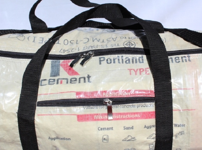 The material used are Cement Bags that are washed, cut and sewn into various designs.
