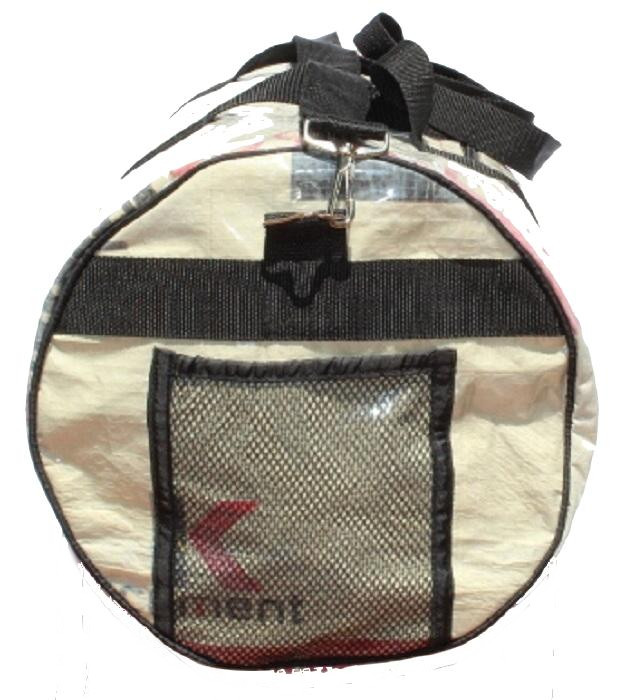 They are covered in PVC, have reinforced webbing handles 4cm wide. Has 15cm x 17cm Mesh pockets on both ends of the bag