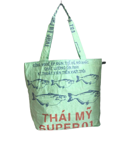 Made from Upcycled Fish Feed Bags and is Fair Trade and handmade in Cambodia.