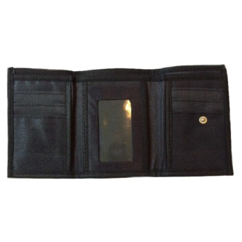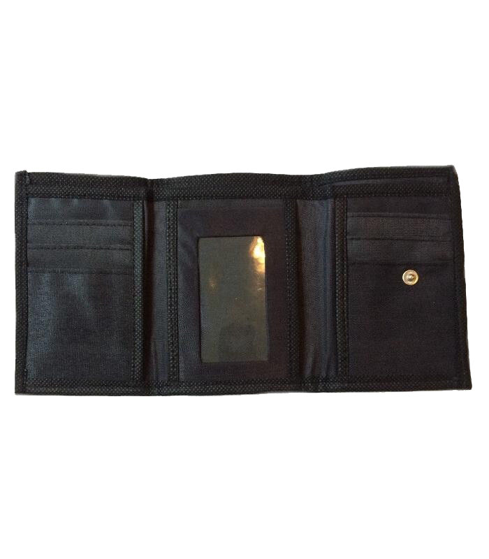 Includes 6 slots for Credit Cards, 3 hidden pockets, 1 plastic view area for your Drivers Licence, 2 seperate compartments for notes including a long zippered compartment and a reinforced zipper compartment for coins. The entire inside is lined in black fabric with black material edging. The outside of the wallet is covered with a PVC plastic to protect the design and for durability or without for a more rustic look