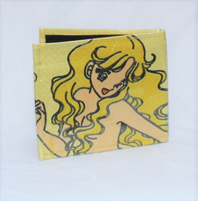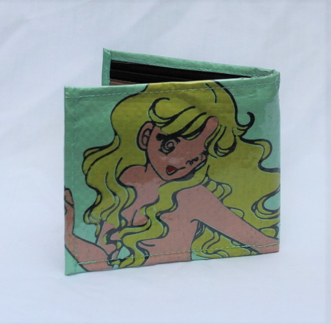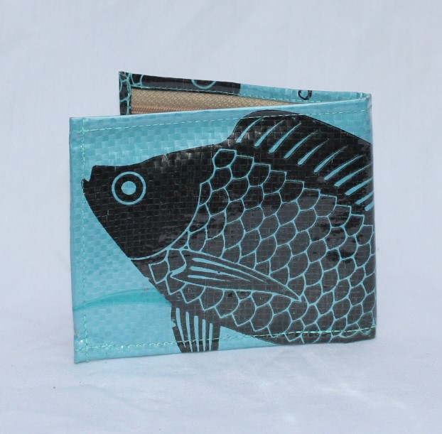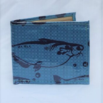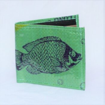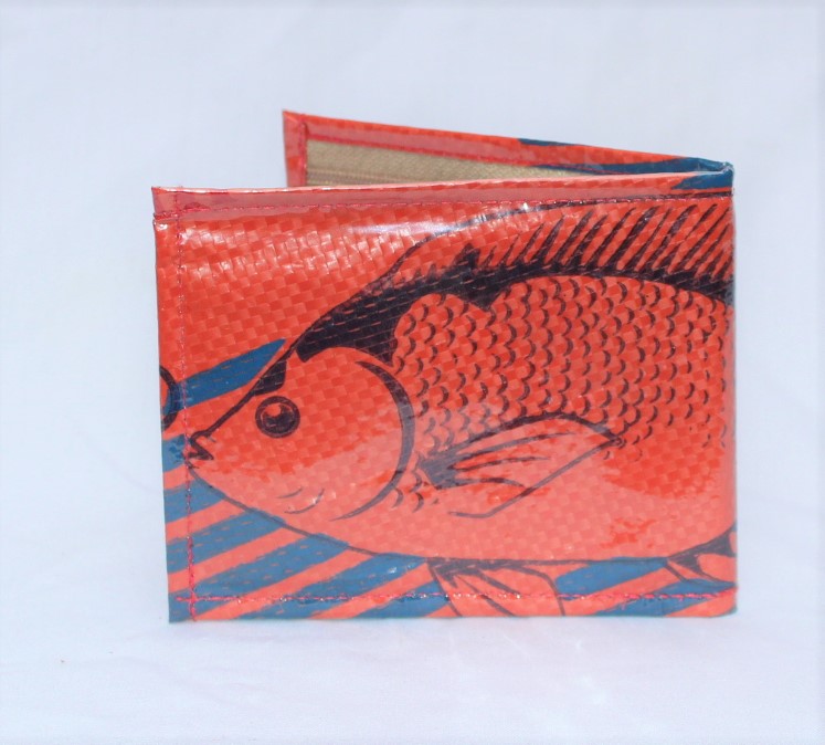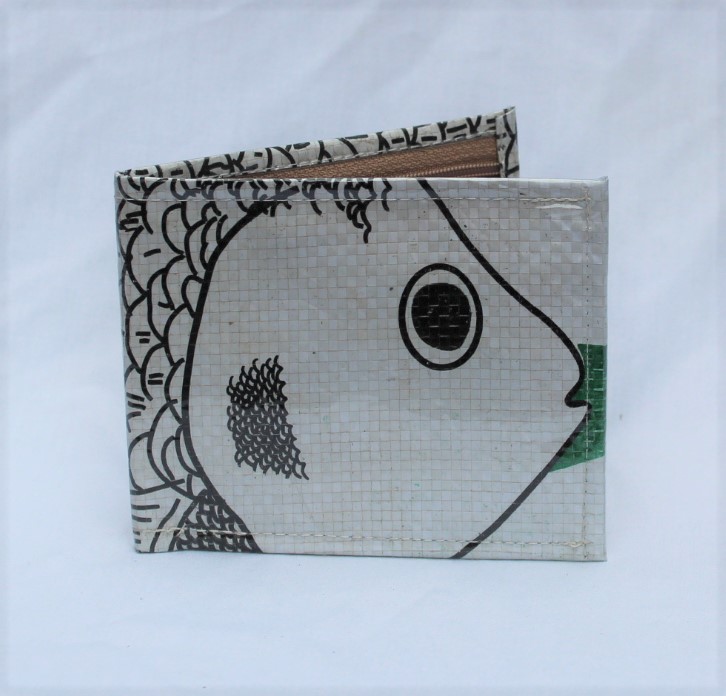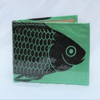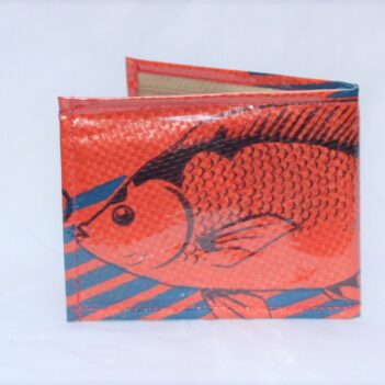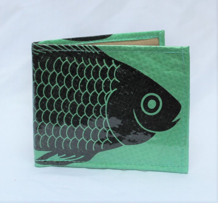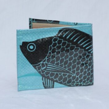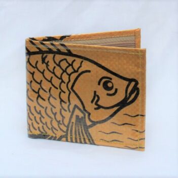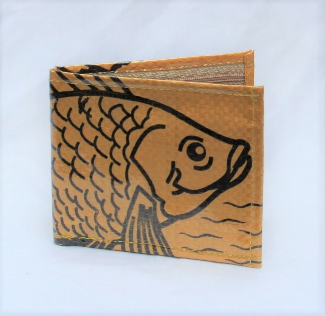 Upcycled Man’s Wallet made from Fish Feed bags, Fair Trade from Cambodia, lined with Fabric and covered in a thick PVC to protect the design.