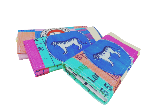 Patch Style Ladies Long Wallet made from Recycled Tiger Cement Bags