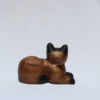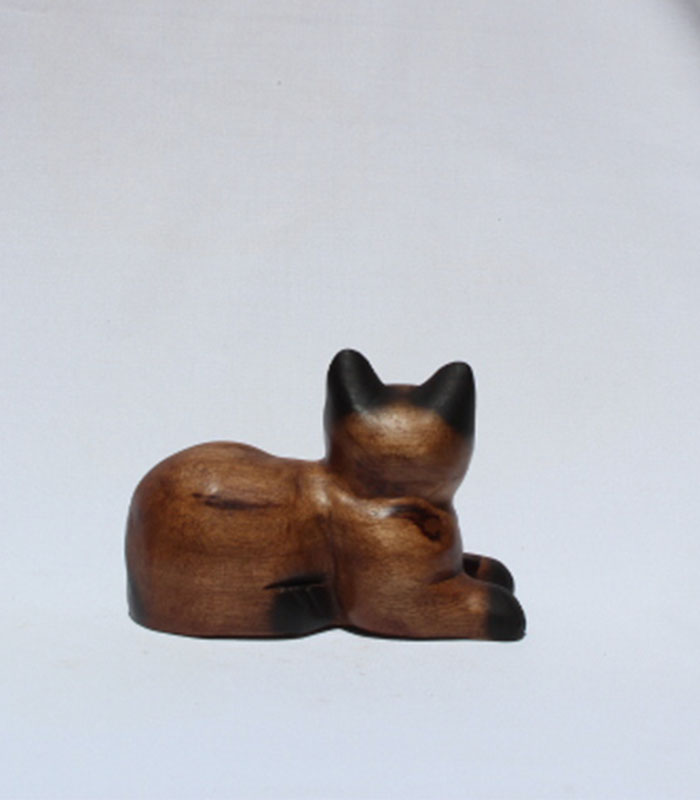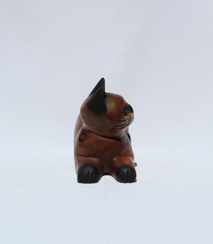 Fair Trade Wooden Kneeling Cat Looking Sideways 10cm
