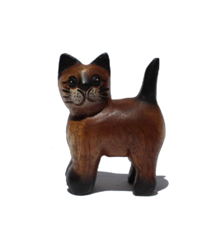 These cute wooden Cat is handcarved in Thailand from Acacia wood.