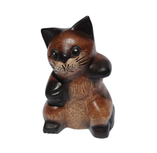 These cute wooden Cat is handcarved in Thailand from Acacia wood.