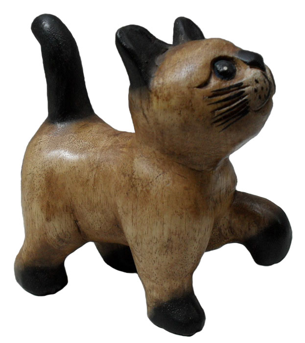 Cute handcarved and handpainted Playful Cat from Thailand Fair Trade