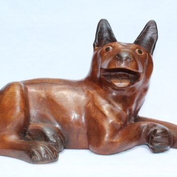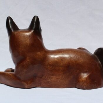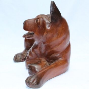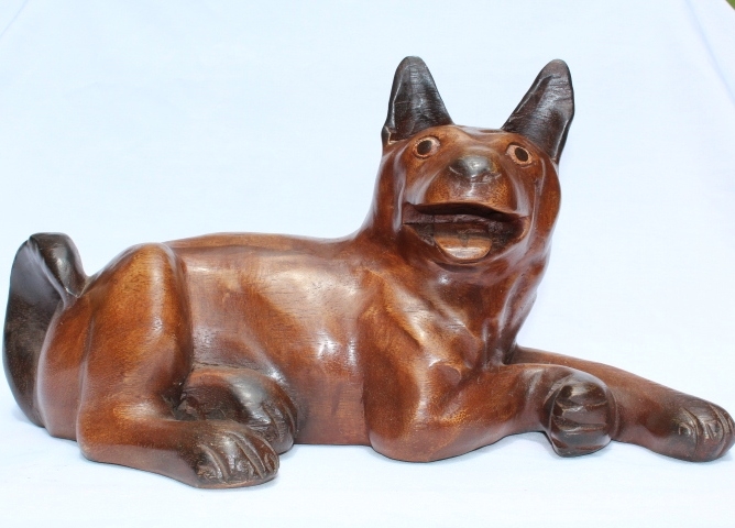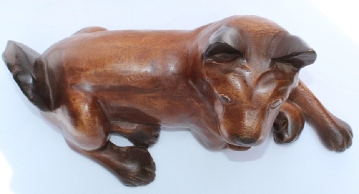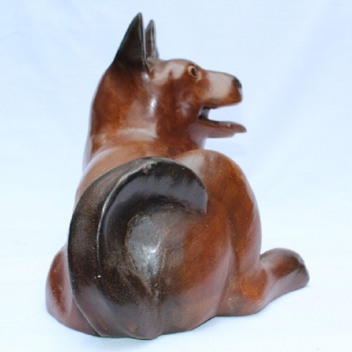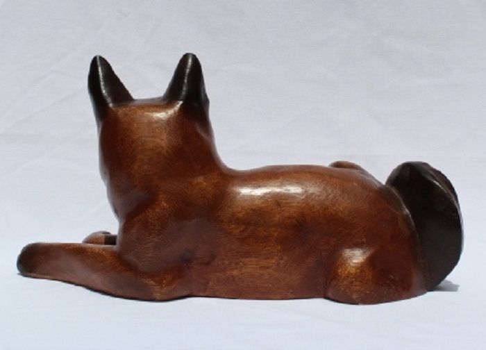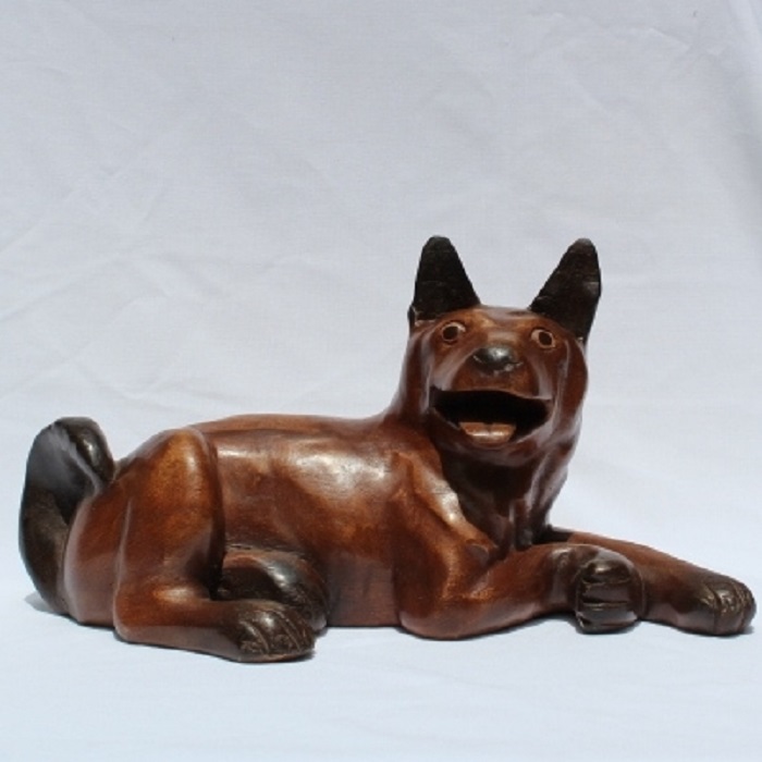Wooden Sitting Husky Dog handcarved in Thailand from Jamjuree Wood