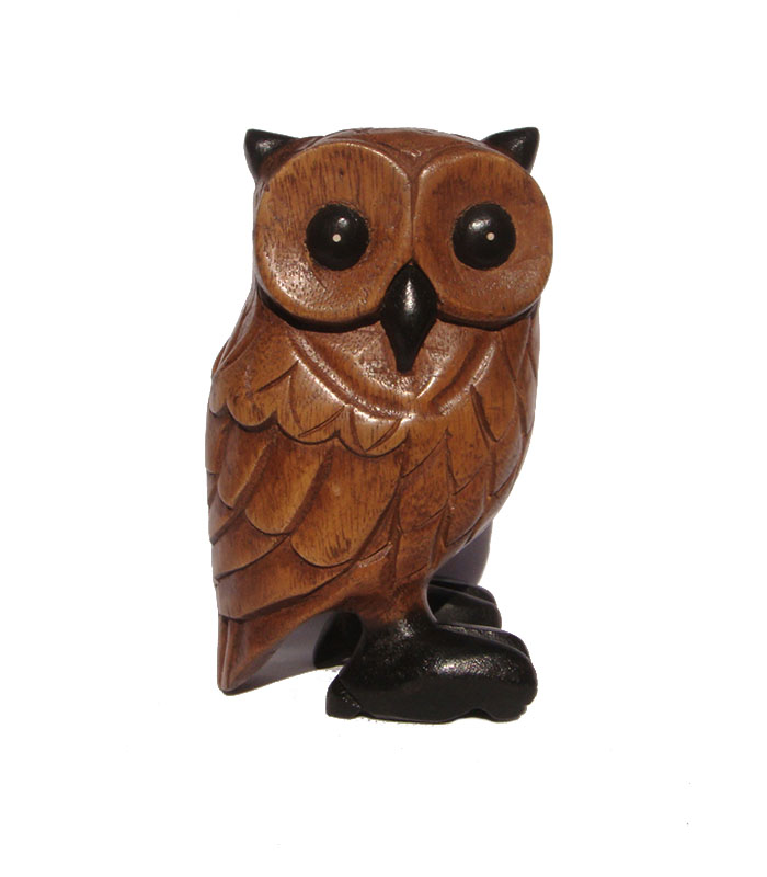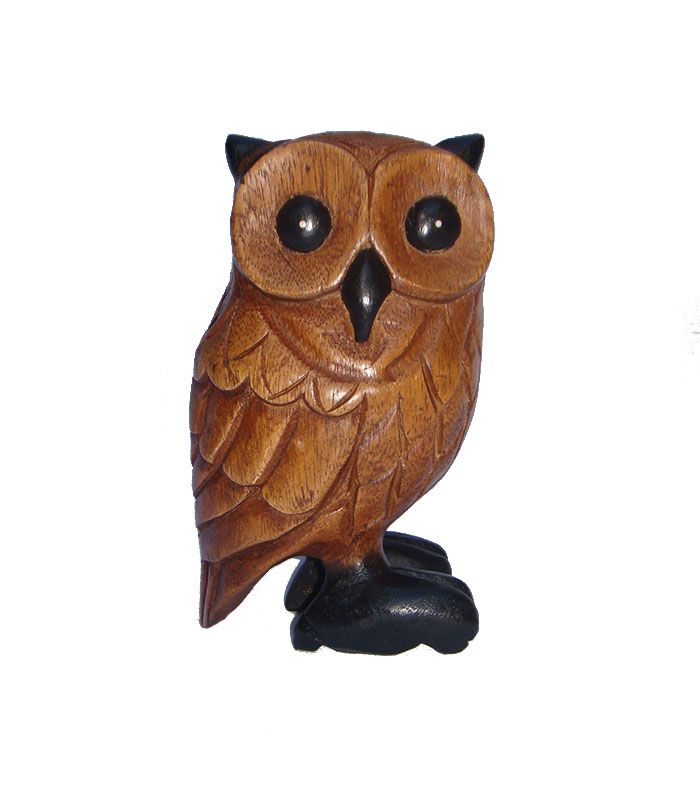 This cute wooden Owl is handcarved in Thailand from Acacia wood.