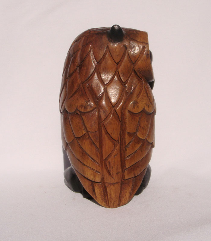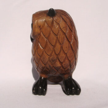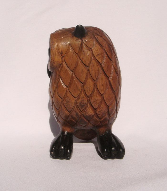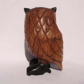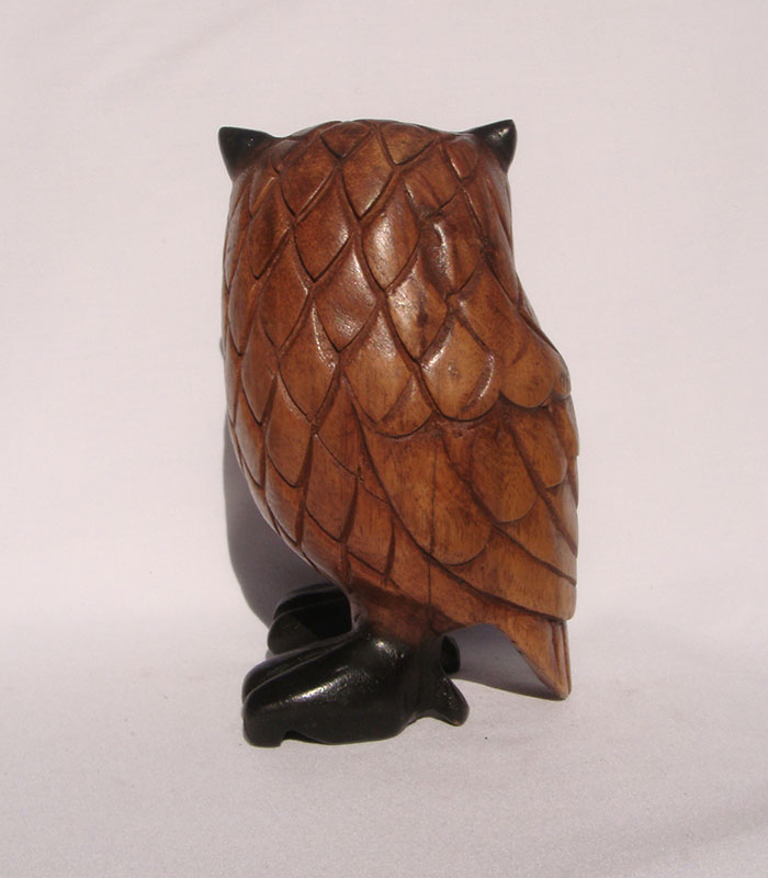 The owl is coloured, hand painted, wax coated and polished.